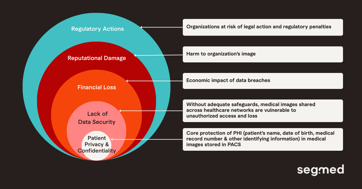 Another concern is the impact on the organization, from regulatory penalties and legal liabilities to reputational damage and loss of patient trust, if a data or security breach occurs.